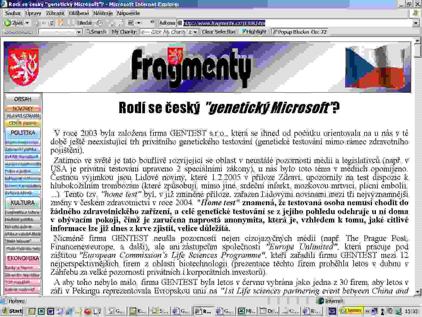 28.2.2008Fragmenty: Rodí se český "genetický Microsoft"?